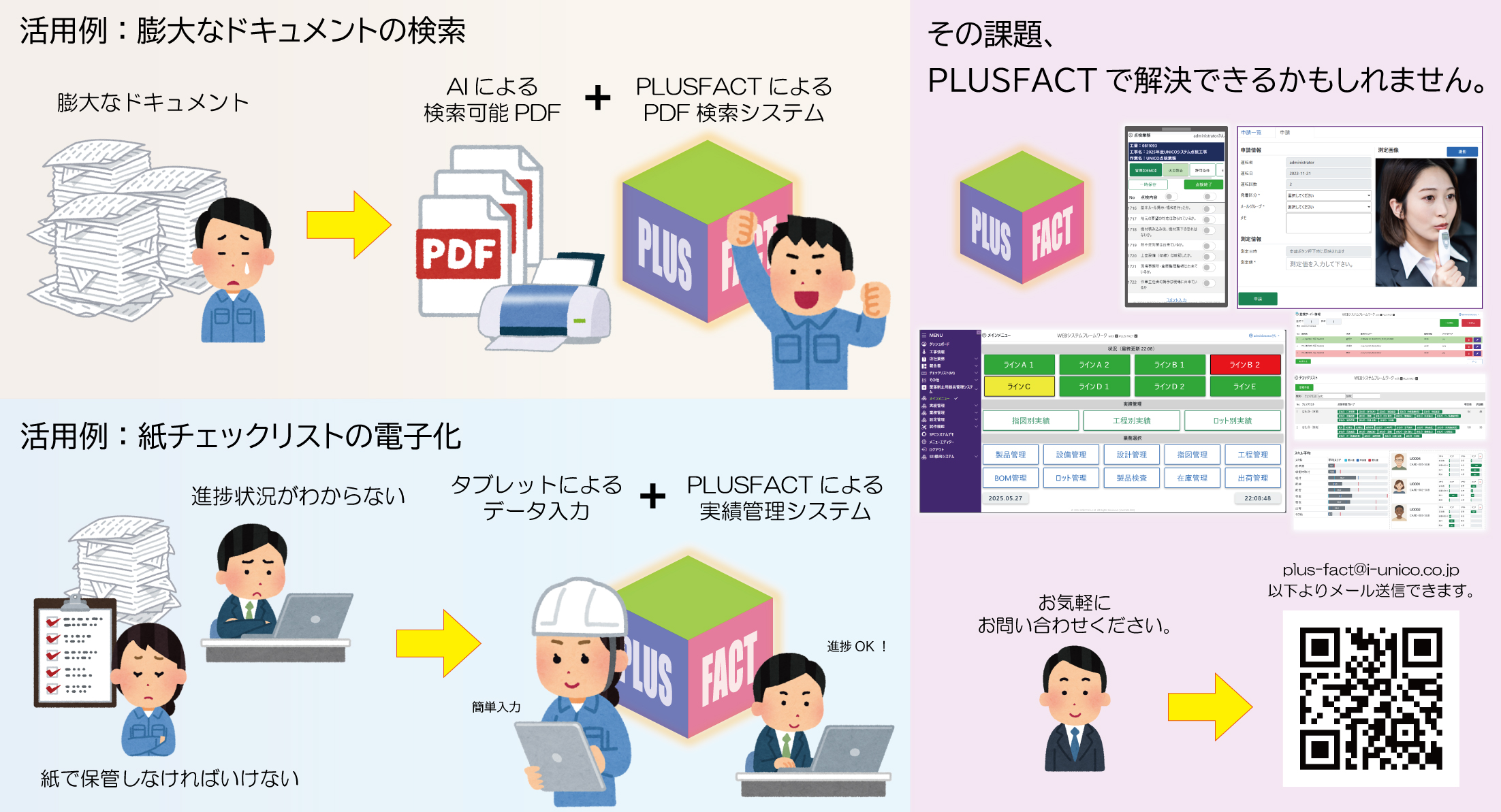 ペーパレスソリューション with PLUS FACT(プラス ファクト) チェックリスト、日報・日誌、紙運用でお困りのお客様へ |